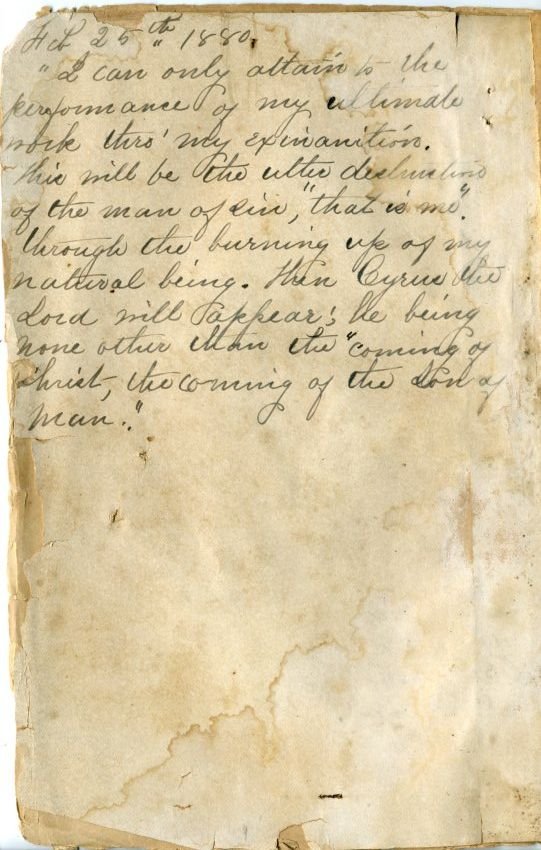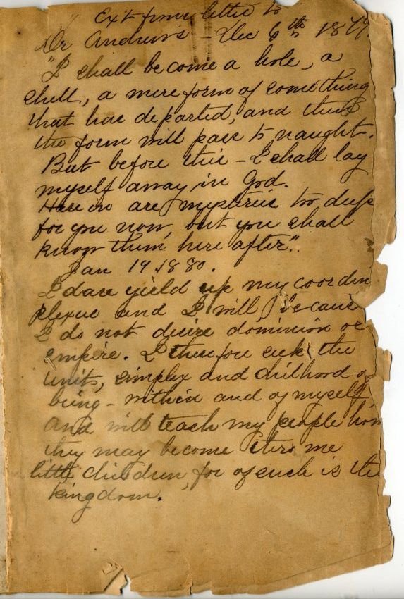 Inside is a hand written piece, dated February 25th 1880. and an excerpt from a "Letter to Dr. Andrews — Dec. 6, 1879"